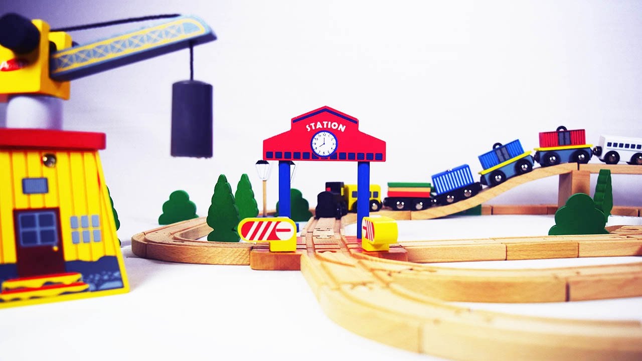 Středně velká dřevěná vláčkodráha, která je složena z 80 dílů. Obsahuje vše potřebné, co správné vláčkové město má mít - Elektrickou lokomotivu na baterie, přejezd, závory, stromečky, autíčka a dokonce také heliport i s helikoptérou!